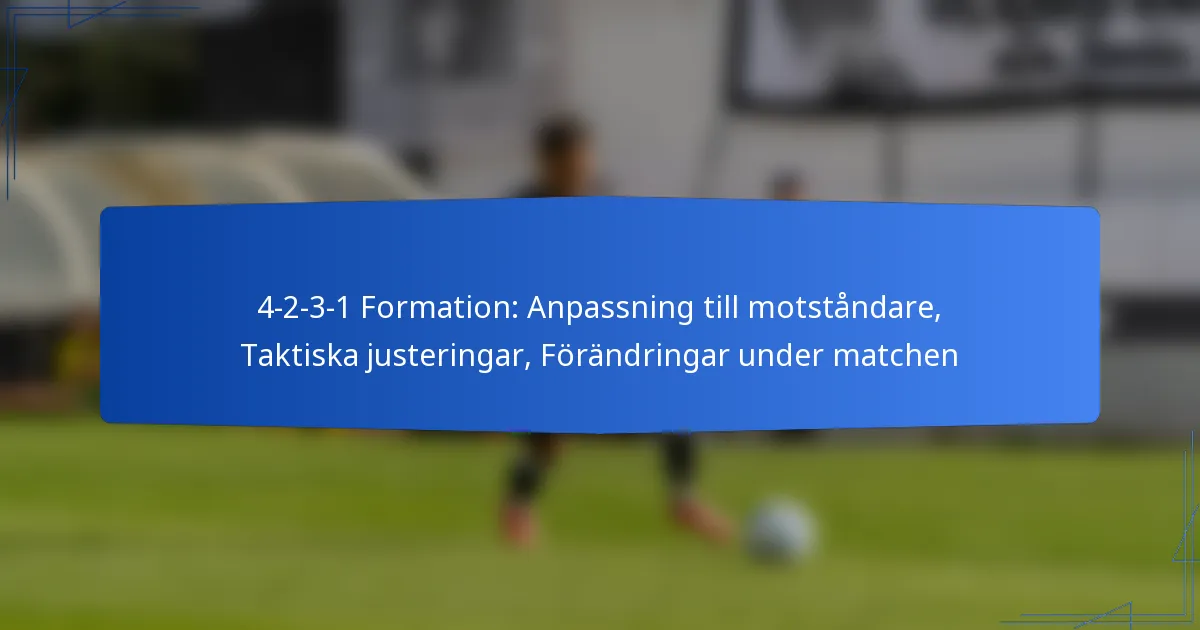 Justeringar under matchen är avgörande för att upprätthålla taktisk flexibilitet i 4-2-3-1. Tränare och spelare måste vara beredda att göra realtidsändringar baserat på matchens flöde och motståndarens taktik.