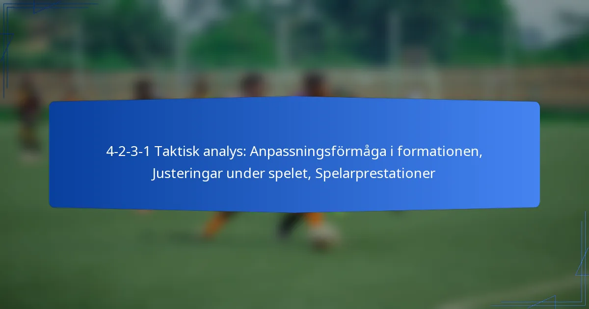 4-2-3-1-formationen är en mångsidig taktisk uppställning inom fotboll som balanserar defensiv styrka med offensiva alternativ. Dess anpassningsförmåga gör att lag kan modifiera sina strategier baserat på motståndarnas styrkor och svagheter, samtidigt som den underlättar justeringar under matchens gång för att svara på matchdynamik. Denna formation förbättrar inte bara lagets konkurrensfördel utan visar också upp individuella spelares prestationer i olika roller på planen.