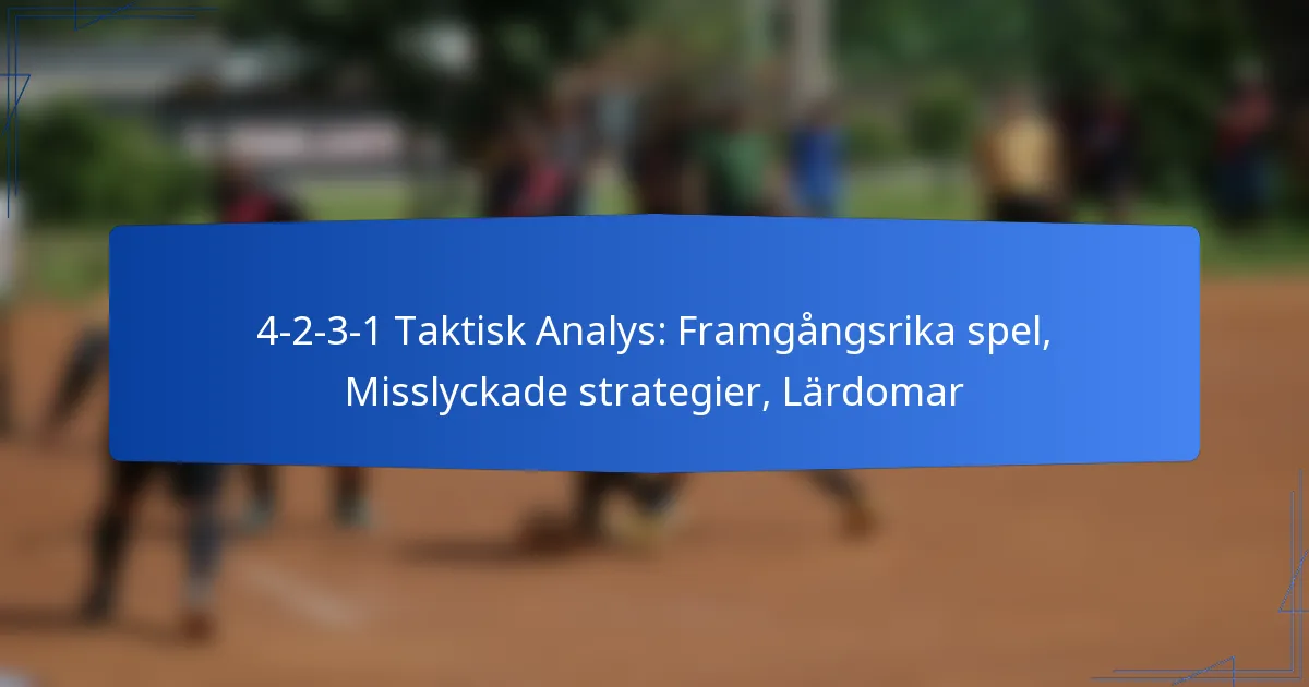 4-2-3-1-formationen är en taktisk uppställning inom fotboll som balanserar försvar och anfall, med fyra försvarare, två centrala mittfältare, tre offensiva mittfältare och en anfallare. Denna analys utforskar framgångsrika spel som utnyttjar snabb bollrörelse och utnyttjar ytor, samt vanliga misslyckanden som uppstår från felaktig positionering och ineffektiva strategier, vilket ger värdefulla lärdomar för lag som använder denna formation.
