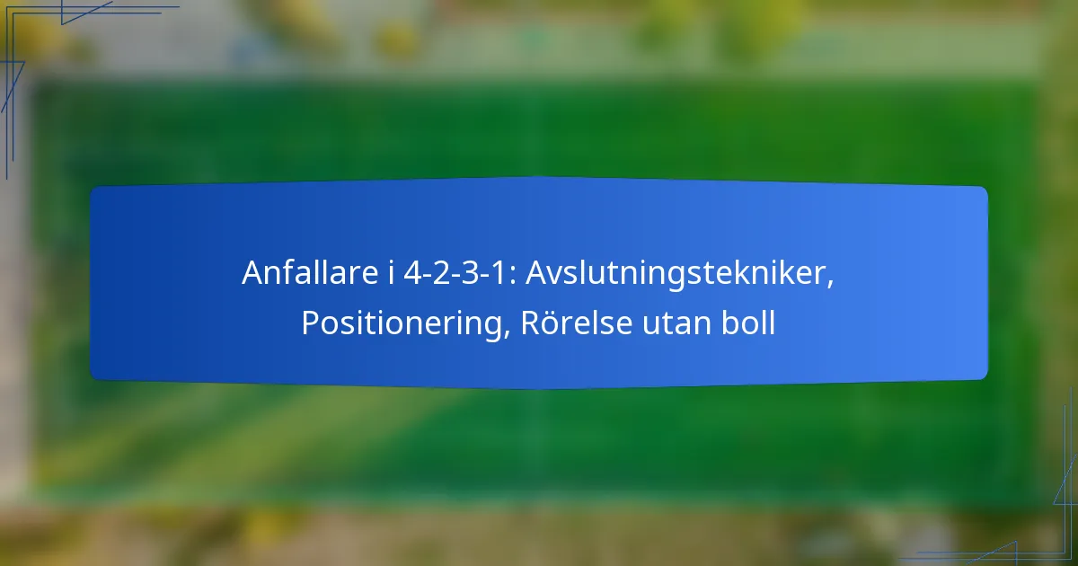 Viktiga avslutningstekniker för en anfallare i 4-2-3-1-formationen inkluderar olika metoder för att effektivt omvandla målchanser. Dessa tekniker är avgörande för att maximera målchanser och kräver en kombination av skicklighet, precision och situationsmedvetenhet.